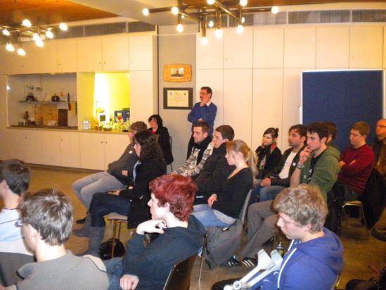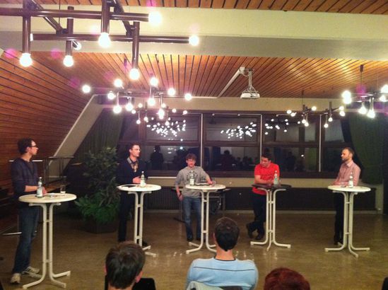 In der dritten Runde konnten die jungen Wähler direkt Fragen an die fünf Vertreter richten. Moderator Scheck griff dabei auch immer wieder die Themen vom Flip-Chart auf. Diskutiert wurde bspw. der Atomausstieg, das Bildungssystem, die Piratenpartei, Studiengebühren und die Integration Behinderter in Schulen.