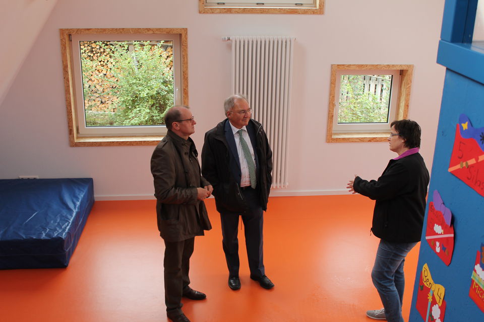 „Besonders für junge Familien, die sich in der Gemeinde ansiedeln wollen, ist der Kindergartenplatz und die Vereinbarkeit von Familie und Beruf das wichtigste Kriterium“, erklärt Bürgermeister Franz Wenka beim Besuch des Landtagsabgeordneten Peter Hofelich im Börtlinger Kindergarten. „Um die Kleinkindbetreuung auszubauen, hat die Landesregierung im Jahr 2011 mit den kommunalen Landesverbänden den Pakt für Familien mit Kindern geschlossen. Dadurch beteiligt sich das Land mit 68 % an den Betriebsausgaben und ist heute bundesweit an der Spitze bei der Mitfinanzierung der kommunalen Kleinkindbetreuung durch das Land“, führt Hofelich aus.