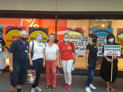 Gemeinsam mit der SPD-Kreisvorsitzenden und Göppinger Landtagskandidatin Sabrina Hartmann, der Kreistags-Fraktionsvorsitzenden Susanne Widmaier, Stadt- und Kreisrätin Hilde Huber und dem Juso-Kreisvorstandsmitglied Ardian Ponik zeigte die SPD bei der von gut 100 Teilnehmenden besuchten Kundgebung, dass sie zu den Kolleginnen und Kollegen und deren Gewerkschaft Verdi stehe. Susanne Widmaier betonte, dass „unser Wirtschaftsleben im Filstal attraktiven und präsenten Handel braucht“. Sabrina Hartmann sagte, man könne „die jahrelang zum Unternehmen stehenden Kolleginnen und Kollegen nicht einfach vor vollendete Tatsachen stellen, sie haben Investitionen und damit eine Zukunftsperspektive verdient“. Hilde Huber unterstrich, es könne nicht sein, dass „jahrelang treue Mitarbeiterinnen und Mitarbeiter jetzt die Zeche bezahlen müssen für Missmanagement und Versäumnisse der Geschäftsführung. Der Kaufhof ist eine Institution für viele Familien in Göppingen.“ Und Ardian Ponik zeigte auf: „Wir als Jusos stehen deshalb Seite an Seite mit Verdi und den Betroffenen!“